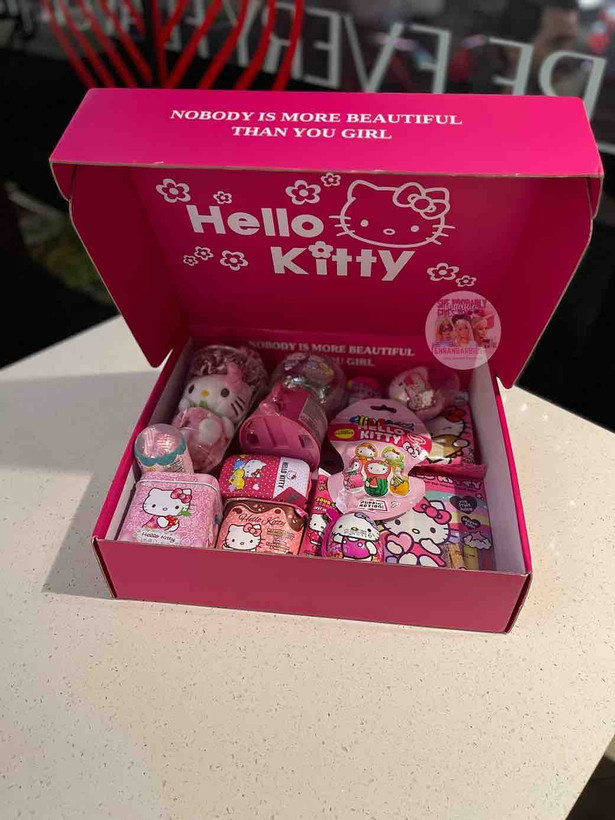 باکس،عروسک، کش، لیپ گلاس،جاسوییچی، ادامس قوطی، نوتلا و چوبشور کیتی،ماشین ابنباتی کیتی، ۳ نوع پاستیل شکری، دراژه ترش کیتی، شانسی، شکلات شانسی،تخم مرغ شانسی،ابنبات شانسی ،ادامس چمدونی ، تخم مرغ شانسی کوکی